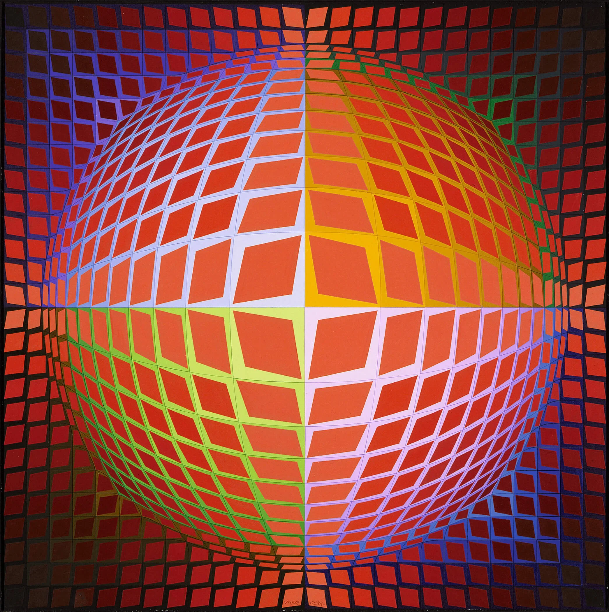 Victor Vasarely, Vega-Kontosh-Va, 1971. Los Angeles County Museum of Art, gift of Mr. and Mrs. Donald Winston through the Contemporary Art Council, Courtesy Artists Rights Society (ARS), New York/ADAGP, Paris. Photography courtesy of Museum Associates/LACMA