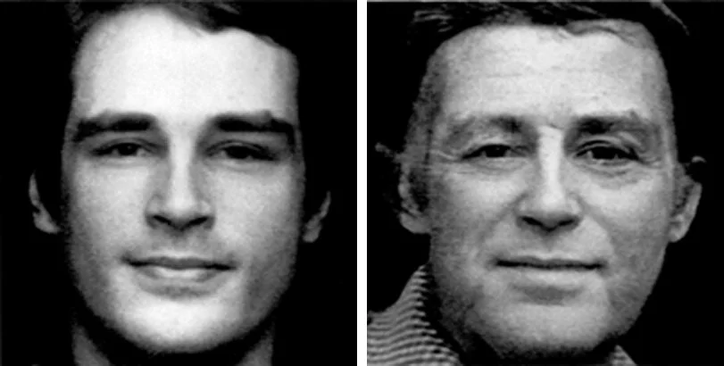 N.B.: “In 1982, the process that we used to morph faces was different in that we would overlay all the images on the eyes and ascertain an average. Then we would warp, or morph, each face to fit the average. It took 25 minutes to scan a face and morph it to the average face and then we’d combine them all together. It was an incredibly tedious process. Nowadays, there are some great programs available online which morph faces together and can weight them in different percentages as well.”