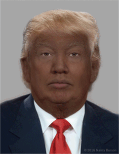 Nancy Burson has always had a keen interest in political issues. In relationship to her “Human Race Machine”, she created a series of images of Donald Trump as different races prior to his election. The “What If He Were: Black-Asian-Hispanic-Middle Eastern-Indian” was originally commissioned by a prominent magazine, but the magazine decided not to publish the images. Despite this setback, Burson remained committed to her work. These images were her attempt to not only expose Trump as a racist, but to challenge public consciousness regarding racist beliefs in the US.