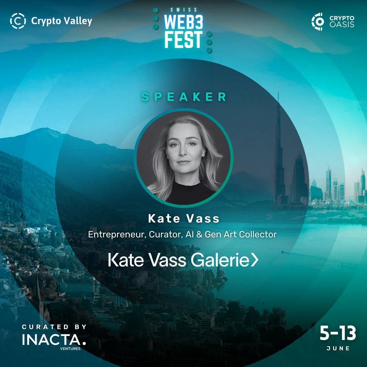 Kate Vass, Entrepreneur, Curator, and AI & Gen Art Collector will be moderating the panel on ‘Eco system development. NFT markets & its challenges’.